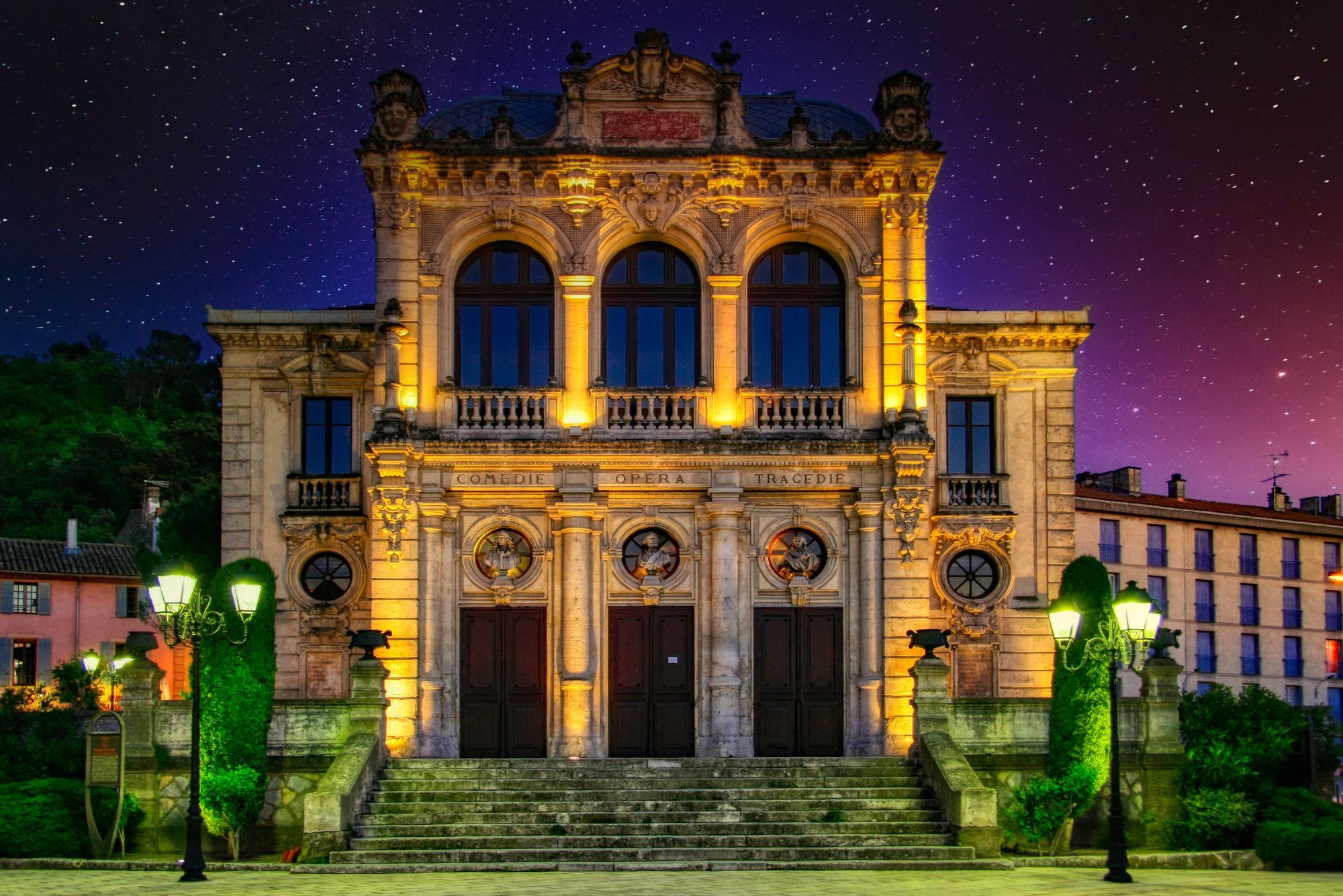 Nachtaufnahme mit Blick zum Hafen von Genua. Die Steine im Vordergrund sind für die Wirkung des Bildes entscheidend.